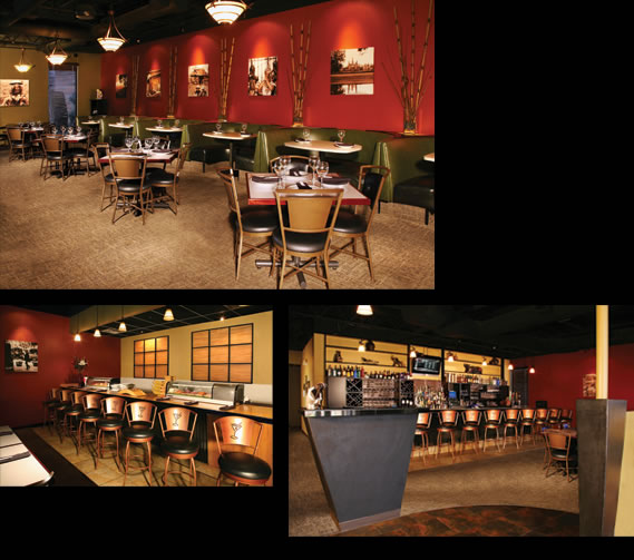 Dsasumo Bistro The project was a space planning design renovation to house an Asian restaurant. The project design included the coordination of all owner-supplied kitchen equipment and restaurant furniture.