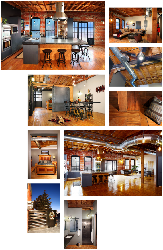 T Square Loft A portion of the 1917 T Square Land Co. building (originally a Chicago Northwestern rail yard warehouse) converted into a modern loft. Design inspiration was taken from the original building use of a warehouse and includes industrial finishes throughout including pre-cast concrete countertops, stainless steel, exposed brick, and open structure, all blending with the urban repurpose. Other features include open, exposed structure ceilings, exposed ductwork, and original distressed wood flooring. The plan includes a master suite and guest bedroom, with an open floor plan to include living, dining, and kitchen. The project was compliant with and received a historic tax credit.