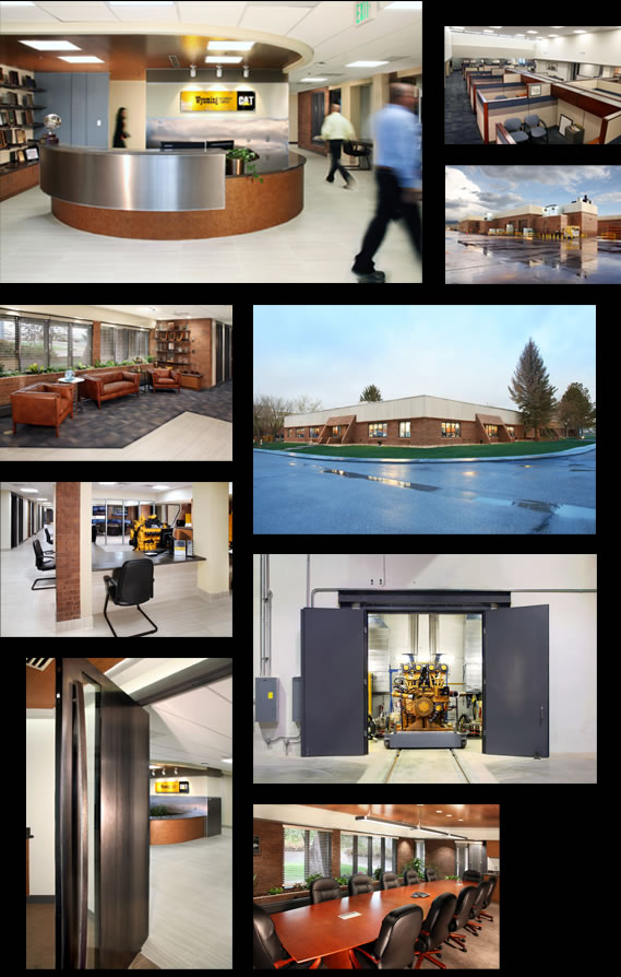 Wyoming Machinery Office Remodel and Addition An addition and remodel for the existing Wyoming Machinery Company’s headquarters office building to add space and modernize the interior spaces. The project was phased to keep the entire building open and operational during construction. This project included converting the building to a peak shaving facility – a first of its kind for Casper! The project also included a new engine dynamometer building addition, a specialized chamber that tests large Caterpillar engines.